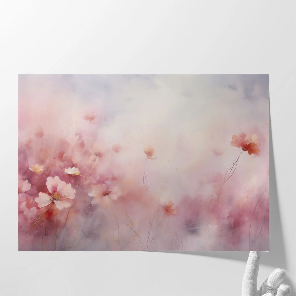 This abstract art features soft pink flowers, blending modern aesthetics with a dreamy and delicate visual appeal.