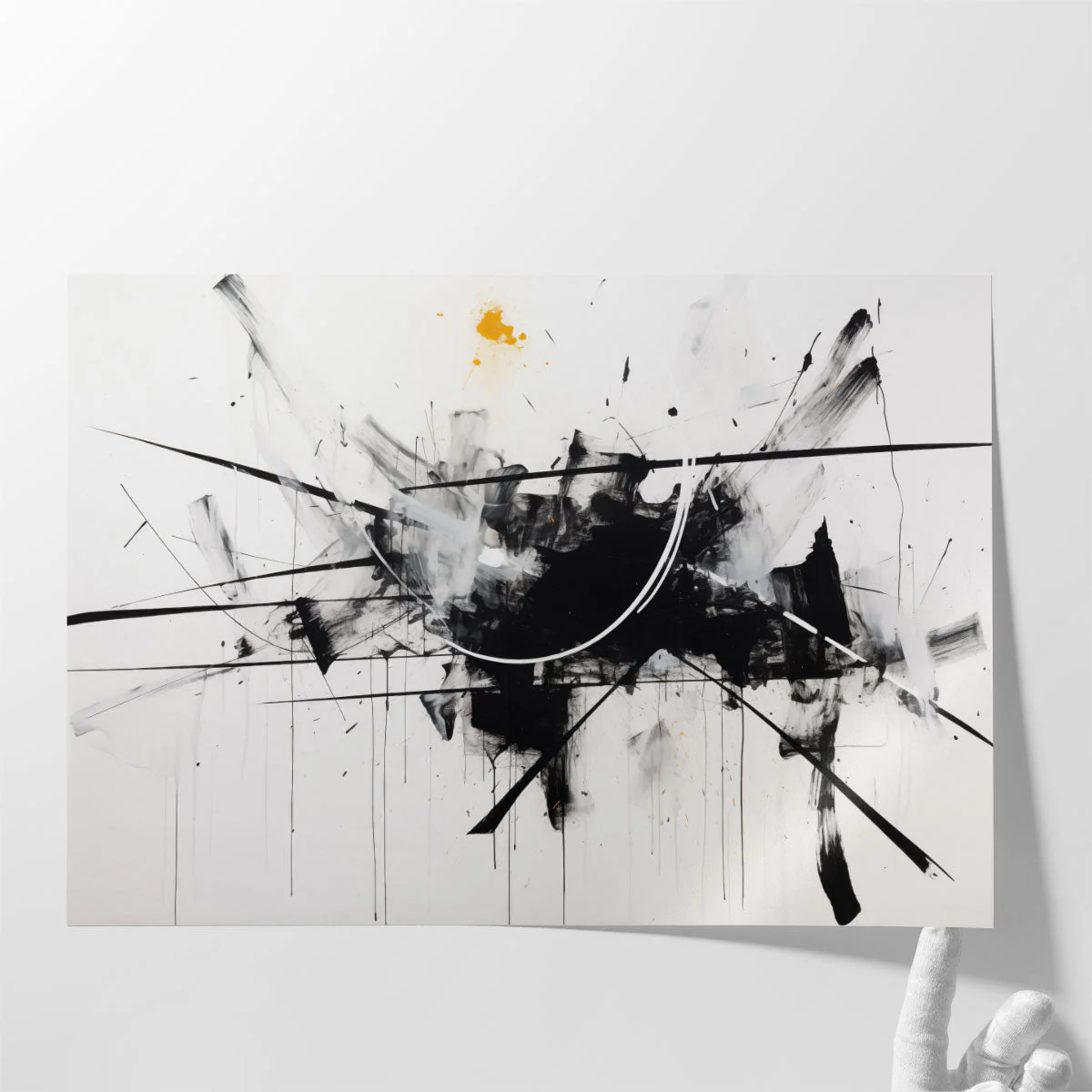 An abstract creation in black and white, this piece embodies a striking interplay of forms and contrasts.