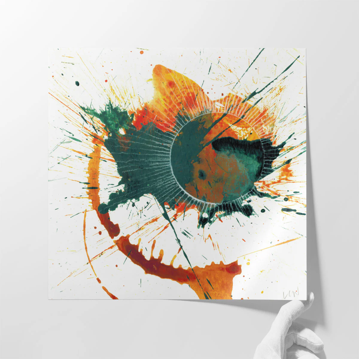 This abstract artwork in shades of blue, white, and orange brings a dynamic energy to any space, with bold and expressive brushstrokes capturing the essence of movement.